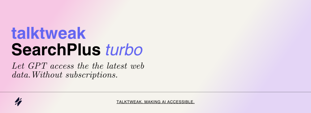 With 200+ happy paying users, SearchPlus is the top-selling talktweak plugin. Use SearchPlus on offical ChatGPT, TypingMind, and AI APIs.